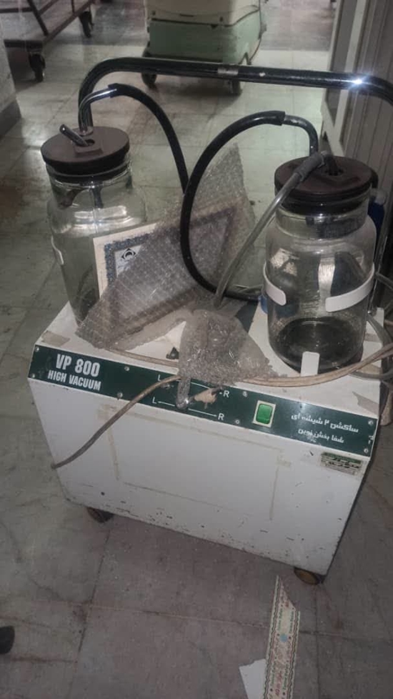 یک عدد دستگاه مازاد ساکشن با مارک شفابخش نوین در مجتمع بیمارستانی امام خمینی (ره) موجود است.